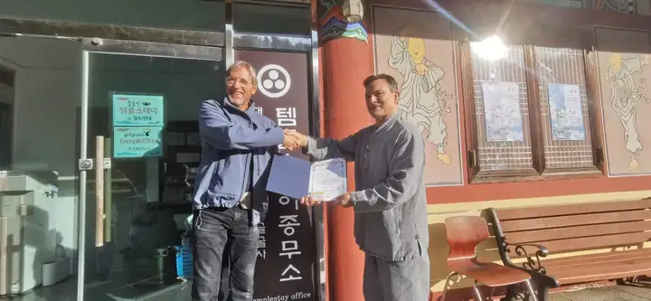 Passage de dan seonmudo parfaitement réussi pour Corinne et Bruno en Corée !